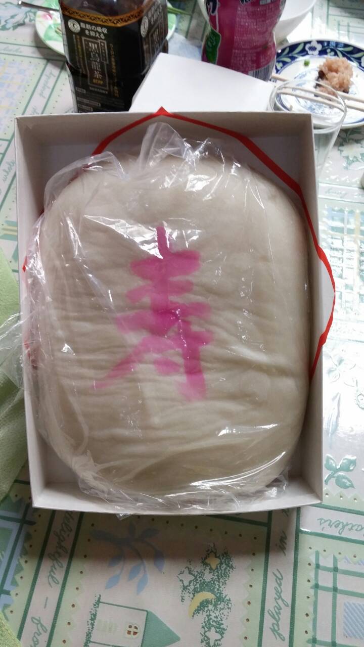 将来、長女が食べ物に困らないように願いまして、用意した一升餅を背負わせて見ました。
