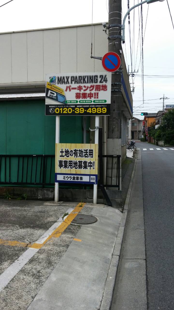 武蔵村山市大南のお客様(時間貸し駐車場)のところに、ミウラ倉庫㈱の看板を新しく設置致しました。