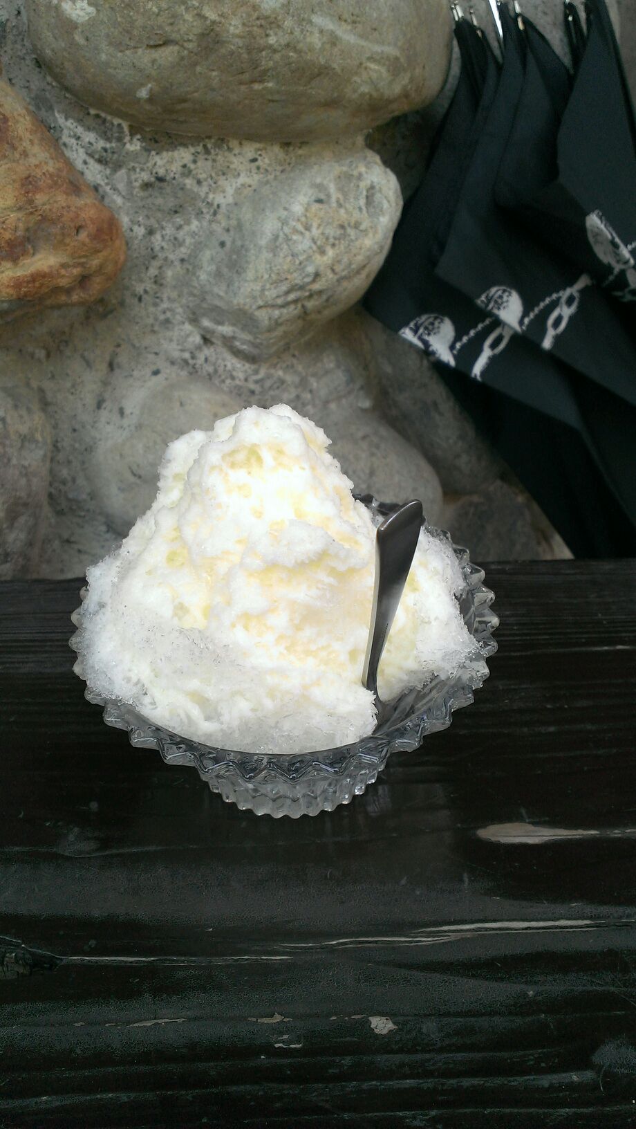 川を眺めながらのかき氷。今日一番の涼でした。