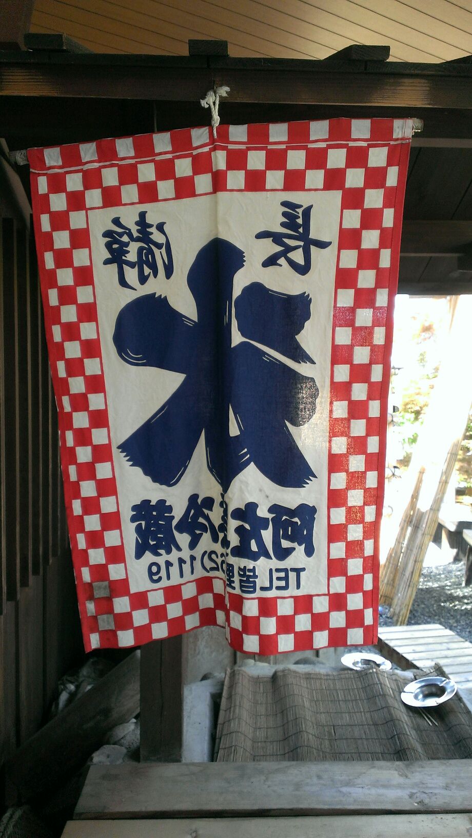 木陰に避難・・赤い縁取りに氷の、のぼりに魅了され「練乳のかき氷下さい。」