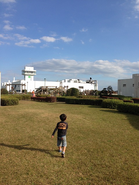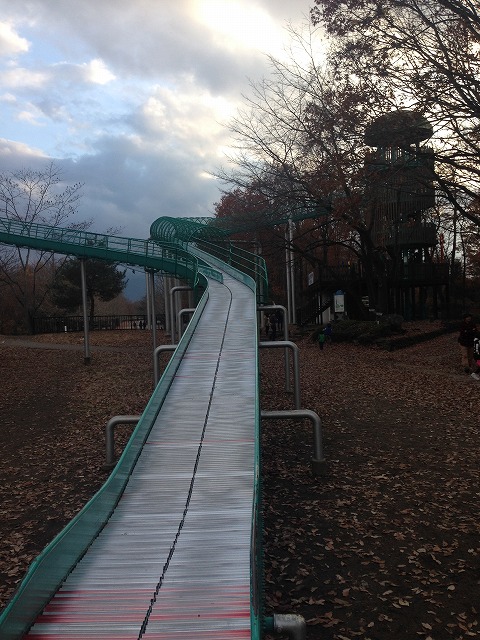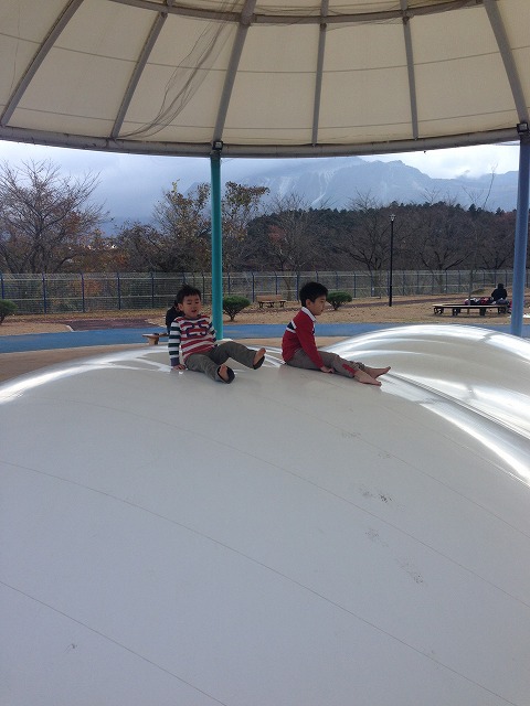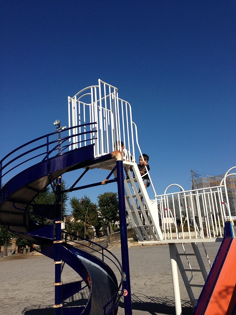 近所の公園で遊んで走り回り。