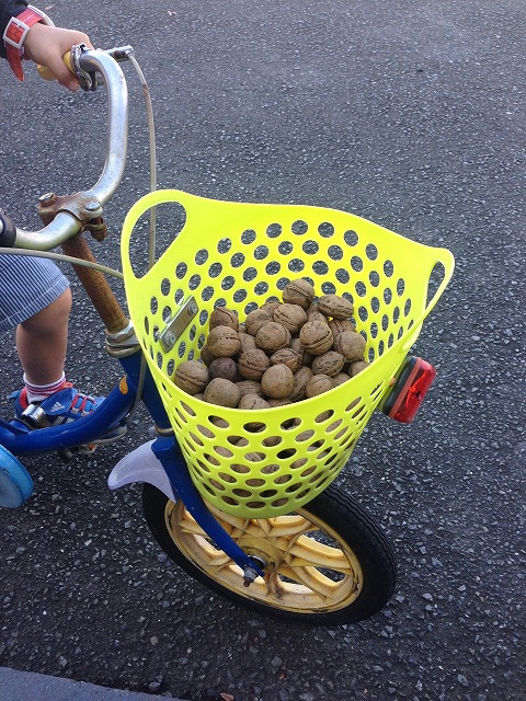 そのあと、クルミを宝物のように沢山拾い。