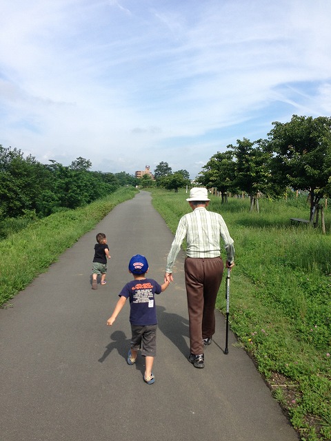 私の祖父が散歩に行くので子供達の希望で付いて行く事になりました。