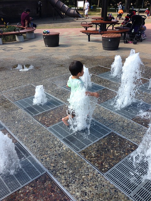 噴水では、お約束のずぶ濡れ!