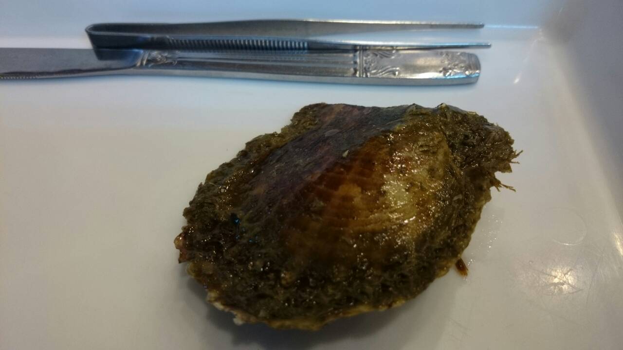 まず 貝とメスとピンセットが用意され……