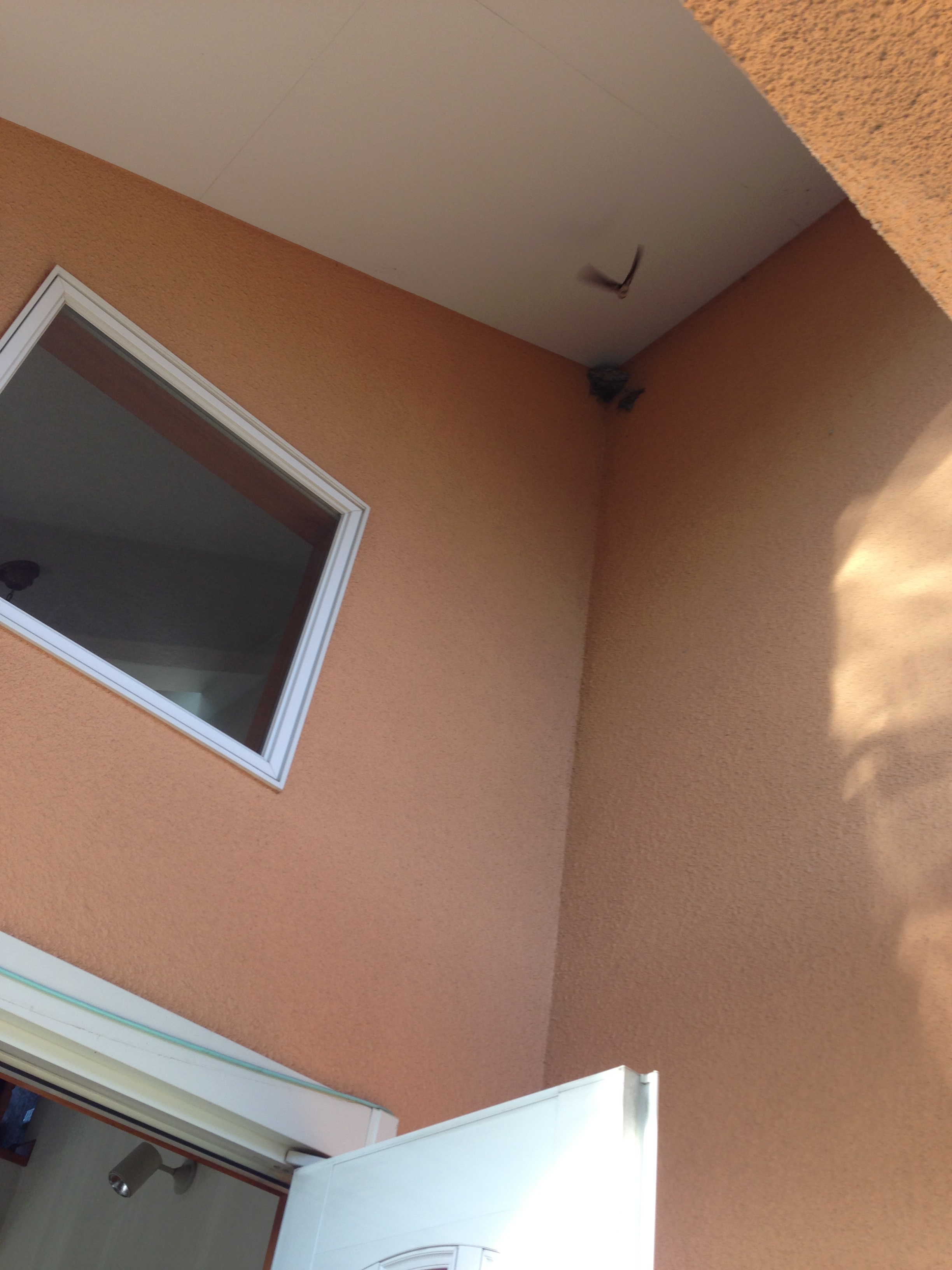 と張り紙がしてあったので、理由を尋ねると上にツバメの巣があるそうです。
