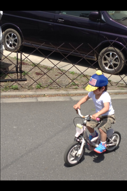 子供が外で遊んでいるので呼びに行くと、3歳の息子が一人で自転車乗っていたそうです。