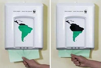 ペーパータオルを使っていくとどんどん南アメリカ大陸から緑が減っていく仕組みになっています。