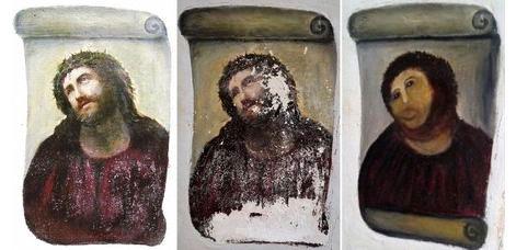 この絵を修復したおばさん、騒ぎになったショックで寝込んでいるらしい(^_^;)
