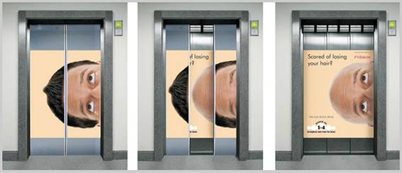 頭皮を気にし始めた男性の場合、このエレベーターの広告を見たらドキッとしちゃいますよね。