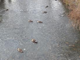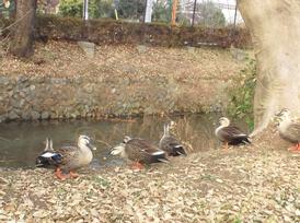大きな鯉がいたりカモがいたり。