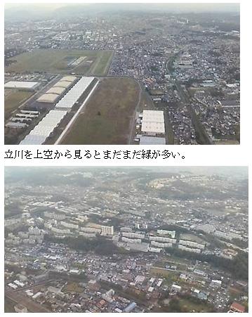 ヘリに初めて乗る娘は昭和記念公園上空にて、