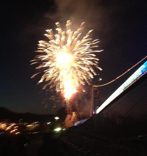 目的地の宮ヶ瀬ダムに到着すると、まずは花火で出迎えてくれました。