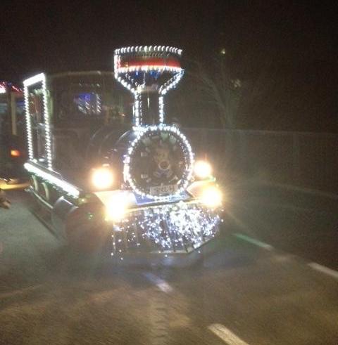 次に綺麗に飾られた光る汽車に乗り巨大なクリスマスツリーに向けて出発進行!