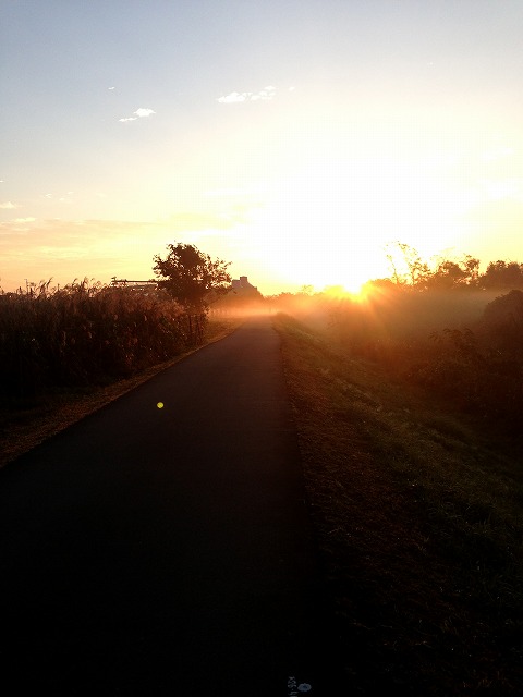朝日がまぶしいので、朝日を背にするコースを考えます。