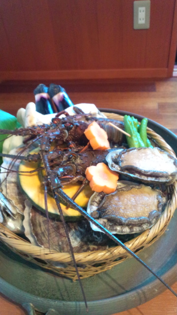 あわび、ほたて、サザエ、伊勢えび、お魚、野菜を・・・