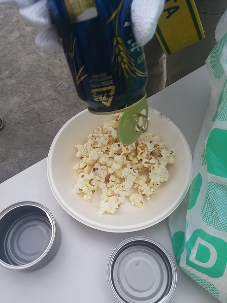 私はPTAのお手伝いで空き缶のポップコーン作りを担当しました。
