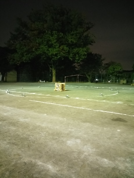 子供達が教室でカレーを食べている間に校庭の真ん中に設置完了です。
