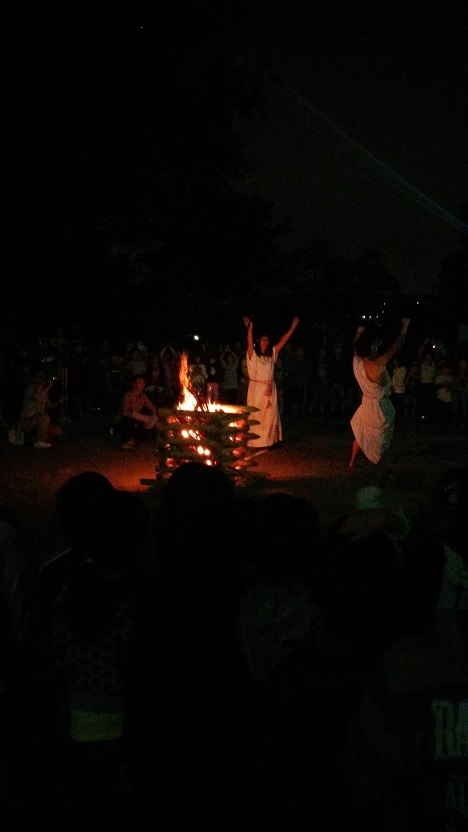 さぁ!ポップなミュージックと合わせて子供達が火を囲み踊ります。
